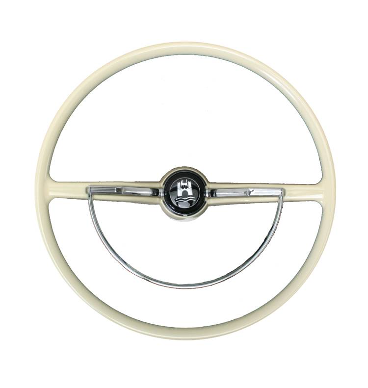 STEERING WHEEL, IVORY WITH HORN BUTTON AND RING, BUG / GHIA / TYPE 3 1964-71 *FACTORY BLEMISH, SLIGHT COSMETIC DEFECT NO EXCHANGES OR RETURNS*